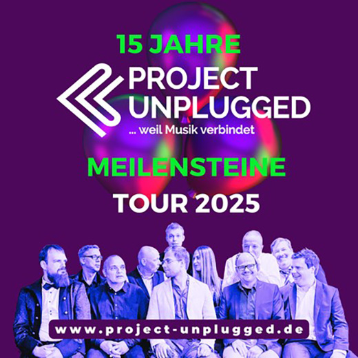 Feiert mit uns ein besonderes Jubiläum: 15 Jahre Project Unplugged! Unsere Meilensteine-Tour nimmt euch mit auf eine musikalische Reise durch mehr als ein Jahrzehnt voller unvergesslicher Konzerte, zeitloser Melodien und einzigartiger Erlebnisse.